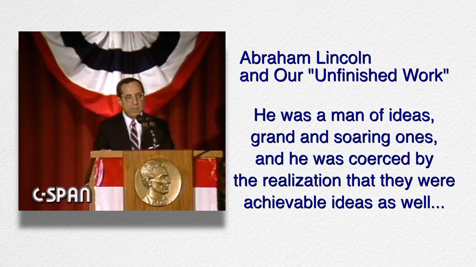 Don't, don't try to make him a Republican in today's terms or a Democrat in today's terms. As a matter of fact, don't besmirch him with any of the modern labels. The old ones were bad enough. Because the modern labels are an absolute joke. What would you call President Clinton, a conservative? no-no-no liberal? No, no, no. He wouldn't like that. Well, then what do you call him? And if the word conservative meant anything, why would George Bush have to come from Texas, where he was a conservative and suddenly become a "compassionate conservative"? And if Democrat, made anything, meant anything, why would you have to run as a "new Democrat"? Why would you need those mitigating mockup words attached to the label if the label told you about the candidate? So the labels don't mean anything. And they didn't mean much in his time. He was a whig, who became a Republican. I say you shouldn't try to label him. He's too supple for that. And if you absolutely forced me to give you a label, because only had two words to describe him. I'd say, well, call him progressive and call him pragmatic and make him a pragmatic progressive or a progressive pragmatist. Because he was broader than that, he was more, here's a good example, I think, of that. Right now we have an argument about who are the conservatives? Who are the liberals? You'd probably have to start it by saying, OK, what did they say about the role of government? And the conservatives would say, as Reagan did and as Clinton did at one point, the era of big government should be over. Big government is the problem. Little government is what we believe in. And then you'd go to liberals and they'd say, well, no, we need more government. You go to Lincoln and what does he say? He doesn't fall into that foolish trap. He doesn't play that simplistic game. He said, look, it's it's it's basic. The Constitution brought us together. Government is the coming together of people to do for one another collectively what they could not do as well or at all privately. And so if you can use the market system, use the market system. Don't bother with us. If you could build all the roads we need in this country, don't ask Eisenhower to do the road program. Just build them and make them toll roads like Europe. If you could educate everybody in this country through the market system, well, then I. Lincoln wouldn't have wasted my time saying one of the first things we have to do is education. And for your information, neither would Adam Smith have done it in the Wealth of Nations. When he says look, market systems are inevitable if you're going to have a good society, but they're not sufficient by themselves, there have to be interventions. And he named specifically education. So, Lincoln didn't read The Wealth of Nations. Maybe did. I don't see any evidence, but he didn't need to. He was as smart as Smith was, only he said it better. And if you take that test and apply it to everything, you end this argument about the role of government. It gets to be very easy because then you're arguing ad hoc. Space program, Kennedy wants one, oh conservatives.? You want to leave it to the private and maybe Boeing will do it. I don't think so. How about government? Yeah, it's a good investment. And so we're in it. And on and on and on. With Lincoln, it was internal improvements. We're talking about a bank. We need a bank. With Hamilton, it was the National Bank, etc., etc.. But that's always a correct analysis. All through it. When it got to Roosevelt and and poor people were dying because nobody was there to help them and old people who were sick had no help. Roosevelt said, look, we have to make a change in this democracy. There are a lot of things the market is not doing for us beyond public schools, and that's healthcare and and work for people or help for people who are out of work and retirement benefits. So you do Social Security, unemployment insurance, workers benefits of all kinds. And then later, Johnson does Medicare and Medicaid. And this is Lincoln. And if you had paid attention to Lincoln in the early stages and didn't make these simplistic arguments about government is bad, government is good, it's neither. It's necessary. And when it's necessary, you use it. When it's not, you don't. We could use that talk today from Lincoln.
